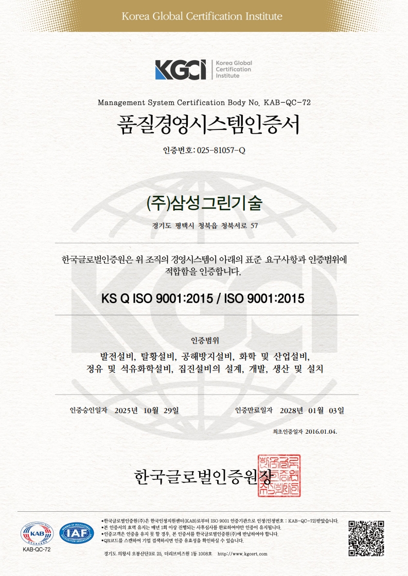 품질경영시스템인증서